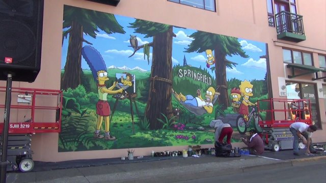 The folks who painted the Kesey mural also did the Simpson mural on the side of the Emerald Arts building. On the opposite wall there is a large mural of the Oregon Trail that my kindred, John Fremont, explored.