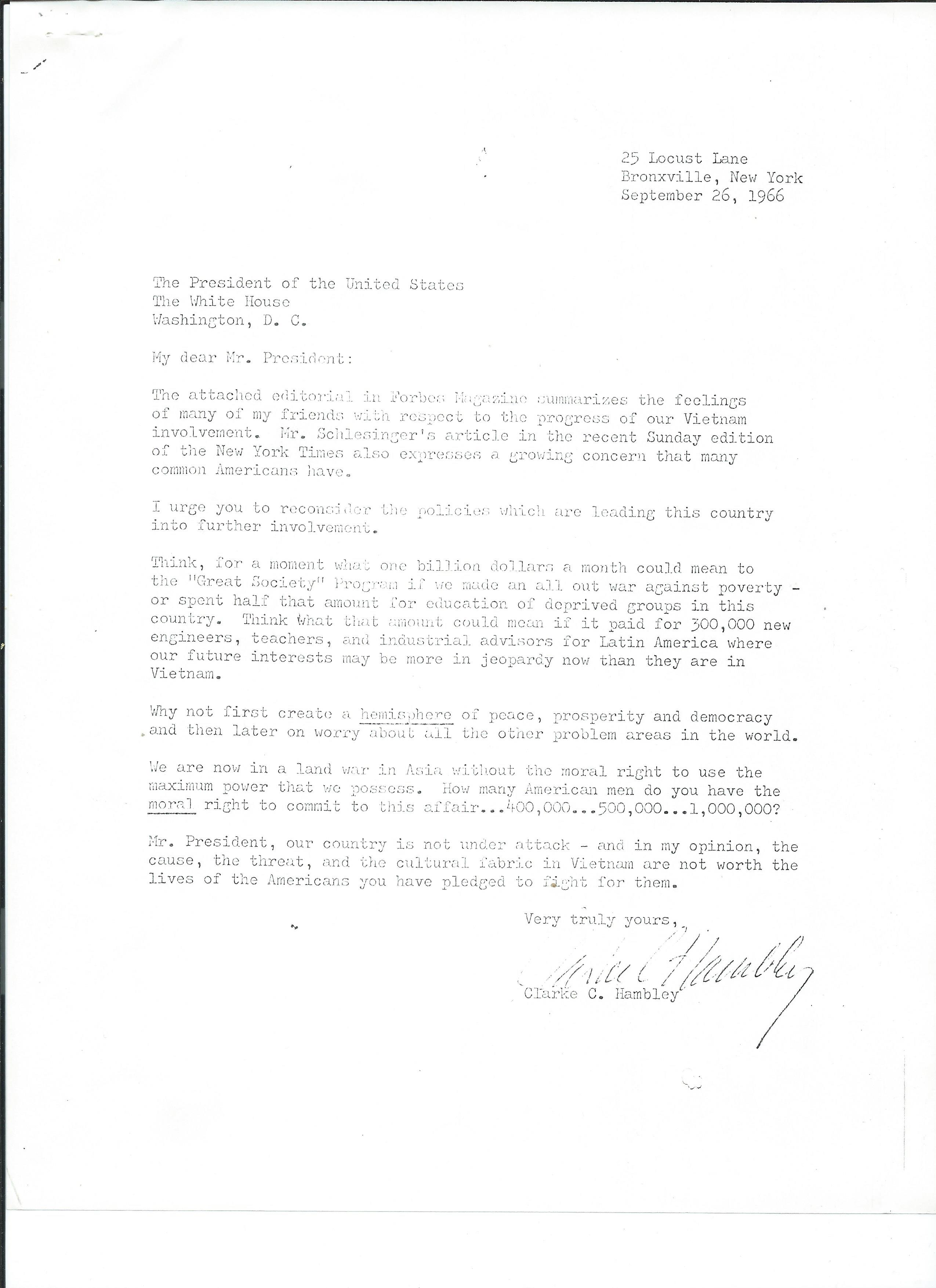 “Think, for a moment what one billion dollars a month could mean to ‘The Great Society’ program if we made an all out war against poverty – or spent half that amount for education of deprived groups in this country.”