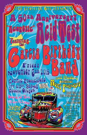 Organized by Stewart Brand, Ken Kesey, Owsley Stanley, Zach Stewart and others. Ten thousand people attended this sold-out event, with a thousand more turned away each night.[3] On Saturday January 22, the Grateful Dead and Big Brother and the Holding Company came on stage, and 6,000 people arrived to imbibe punch spiked with LSD and to witness one of the first fully developed light shows of the era.[4]
