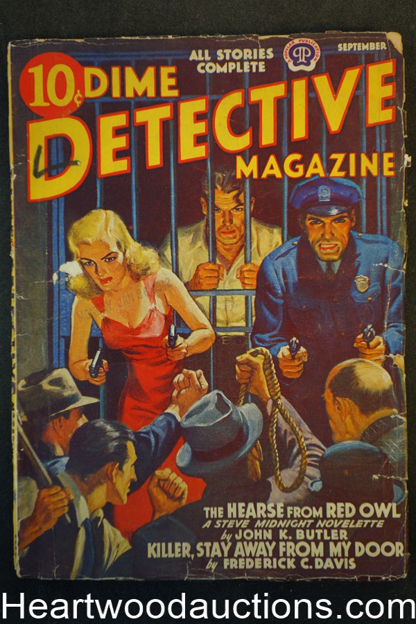 His best known series character, of course, was Steve Midnight, the trouble-prone hack for the Red Owl Cab Company of Los Angeles, who appeared in nine stories in Dime Detective, but he was also responsible for the adventures of police detective Rex Lonergan, undercover cop Tricky Enright, and hard-boiled phone company inspector Rod Case and even penned one story about Sandy Taylor of the Harbor Police.