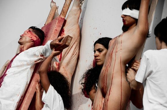 Above is the bloody artwork of Tyler Shields, and my friend, Paul Drake, who was the main bad guy in ‘Sudden Impact’ who raped Susan Lockley, who is crucified in the movie ‘The Second Coming of Susanne’ made by my high school chum. In my Reality Blog, I can have Paul got to Carmel and slice up the Eastwood Women, and crucify Tyler. Consider the bloody scenes rendered by Hermann Nitzch.