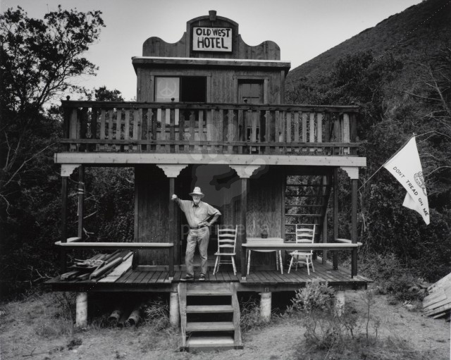 Here is Ferlinghetti standing on the porch of The Old West Hotel with a ‘Don’t Tread On Me’ flag. Consider ‘Out West’ magazine, and ‘The Last Chance Saloon’.