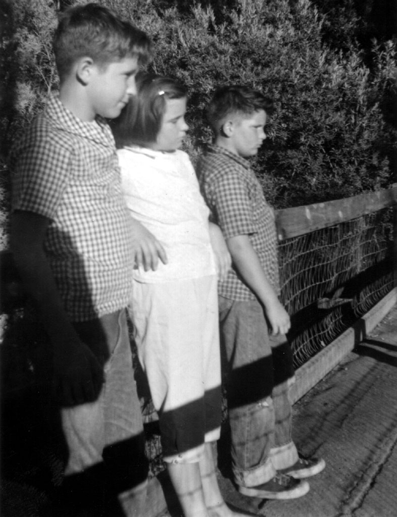 The world-famous artist, Christine Rosamond Benton began her autobiography talking about how different I looked from my siblings. She said I was taller and more slender, while they were squat. I had long graceful fingers, they had stubby fingers. Then, there was my aquiline nose. My siblings had short upturned noses. You can see my fine artistic nose taking shape in the photo of Mark, Christine, and myself on a bridge in Roseville. I have a look of bliss and inner peace on my face, while Mark is giving the camera his mean and pouting look. We all owed him. He was, and still is, a whiney baby. We got into fist fights because he was forever trying to disqualify me, throw me out of the nest. I made him look bad. He was our mother’s favorite, the first-born. Our father told all our kindred I was not his son, but…
