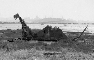 After I dropped put of school I did a painting of the duck hunting shacks off to the right to the entrance of the Bay Bridge. Bill and I had gone there after Mr. Arnold took us to the Army depot for a function we ditched. We cooked muscles in a old rusty can in a wrecked duck boat. We then lay down boards and made our way to one of these shacks. Suddenly, a man came out and told us to go back the way we came.