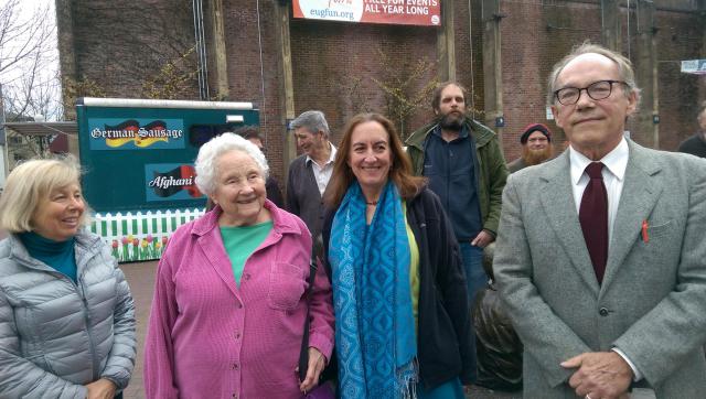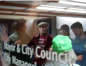 This is the core of OCCUPY and SLEEPS. Emily, also known as ‘Brave Beatrice’ is a member of The Nightingale Collective, along with Alley Valkyrie and her lover, John Monroe. Is that Emily’s bodyguard – Lurch? Is Emily and Lurch concerned about being molested by a crazed Zombie panhandler – for the Arts? Is it time to revive ‘The Rocky Horror Picture Show’. That’s City Councilors, Betty Taylor, and George Brown, bookending Alley Valkyrie’s compatriot in the…