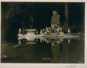 When Belle called me, and I told her she was going to be my heir to the Great Tale, little did I know she was already an heir to much of it. Belle’s mother had done much of the work. Catherine Vadertuin’s Descent of Inanna is reminiscent of the plays that Joaquin Miller put on in the Oakland Hills, and the dramas at Bohemian Grove.