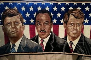 Angered by the lawsuit, Bucky throws away his wall tapestry of Ronald Reagan, and orders online a tapestry of the Kennedy Brothers, Martin Luther King, and Saint Fudgy. With his order he gets an image of Jesus for free. Bucky is now faced with an old dilemma, being, he was a Republican who did not believe in Jesus, even thought he alluded to this when pressed. To hang, or, not to hang. There is a knock on the door. Bucky opens it and is met with the hard stare of his new neighbor. He returns his classic ‘I am dealing with another parasite on society’ glare.