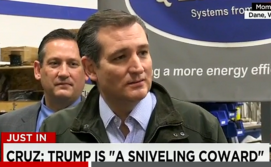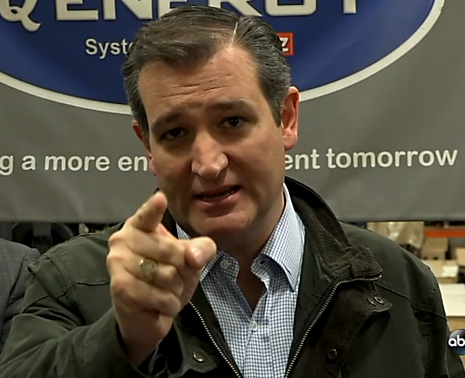 Ted Cruz is a long lean mean man from Texas. The other day he pointed at the news camera with his finger, and said;