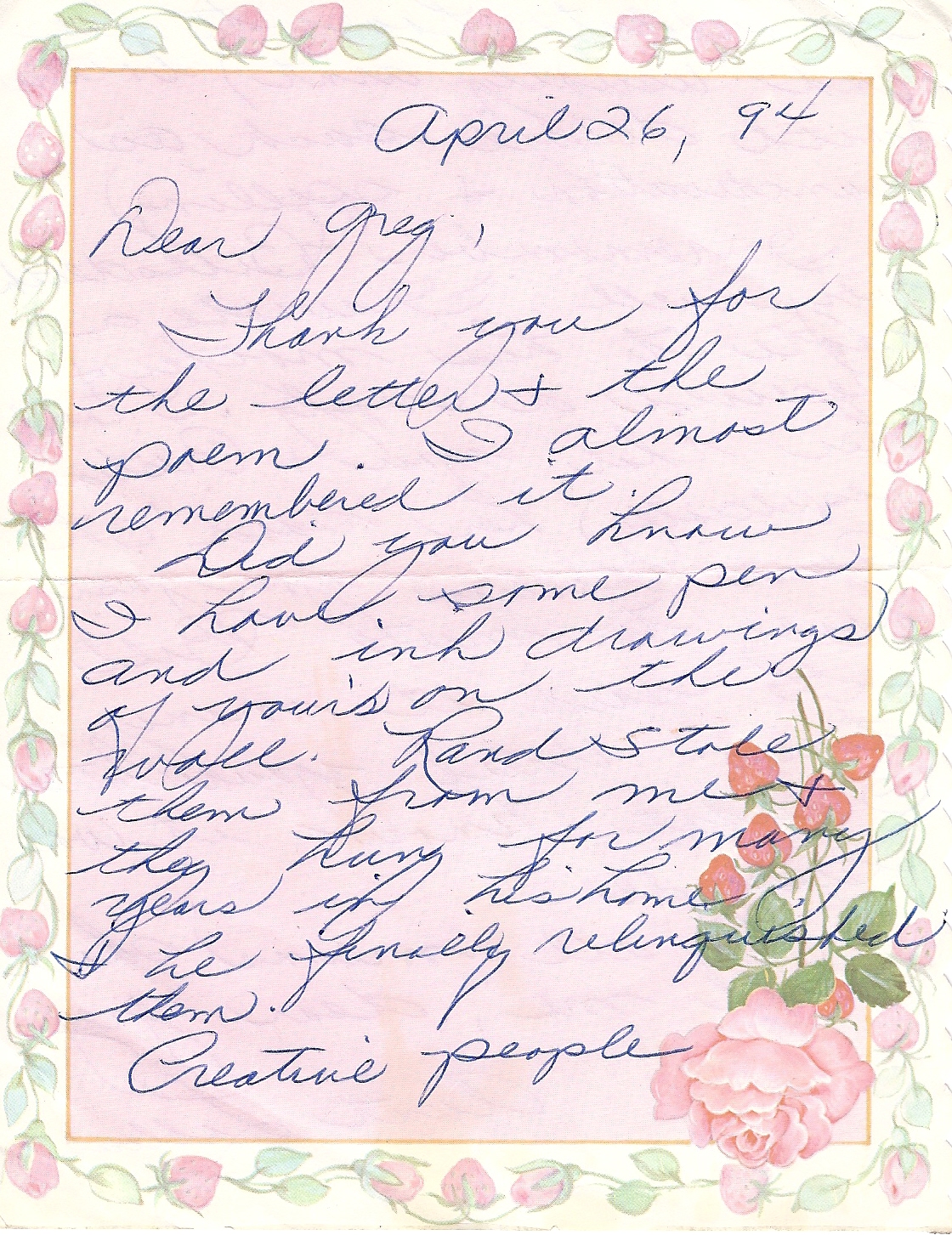When I came across aunt Lillian’s letter, I forgave her, and wanted her to be an immortal when it comes to my revelations about the Holy Grail. Here alas is an accurate and historic account of the family artists. Lillian says she wrote a note to Bill Arnold’s mother after his death, and got a reply. Bill was a brilliant artist, poet, and playwrite who died just after I turned eighteen. We were best friends since we were twelve. Christine admired our creative bond. We lived and died for our art.