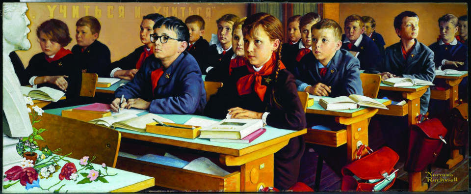 Solomon is the owner of S2 Art Group, which is headquartered in Las Vegas. For years he was the exclusive lithographer for Rockwell, and for decades has collected original Rockwell paintings. One of those was “Russian Schoolroom,” a 1967 oil-on-canvas that depicts schoolkids seated at desks in a classroom staring at a bust of Vladimir Lenin. Solomon lent the painting to a gallery he owned, Circle Art Galleries in Clayton, Mo., for an exhibition of Rockwell lithographs and original paintings. The piece was stolen by “two guys,” as Solomon remembers, during the night of June 25, 1973. “Russian Schoolroom” was the only piece taken during the heist.