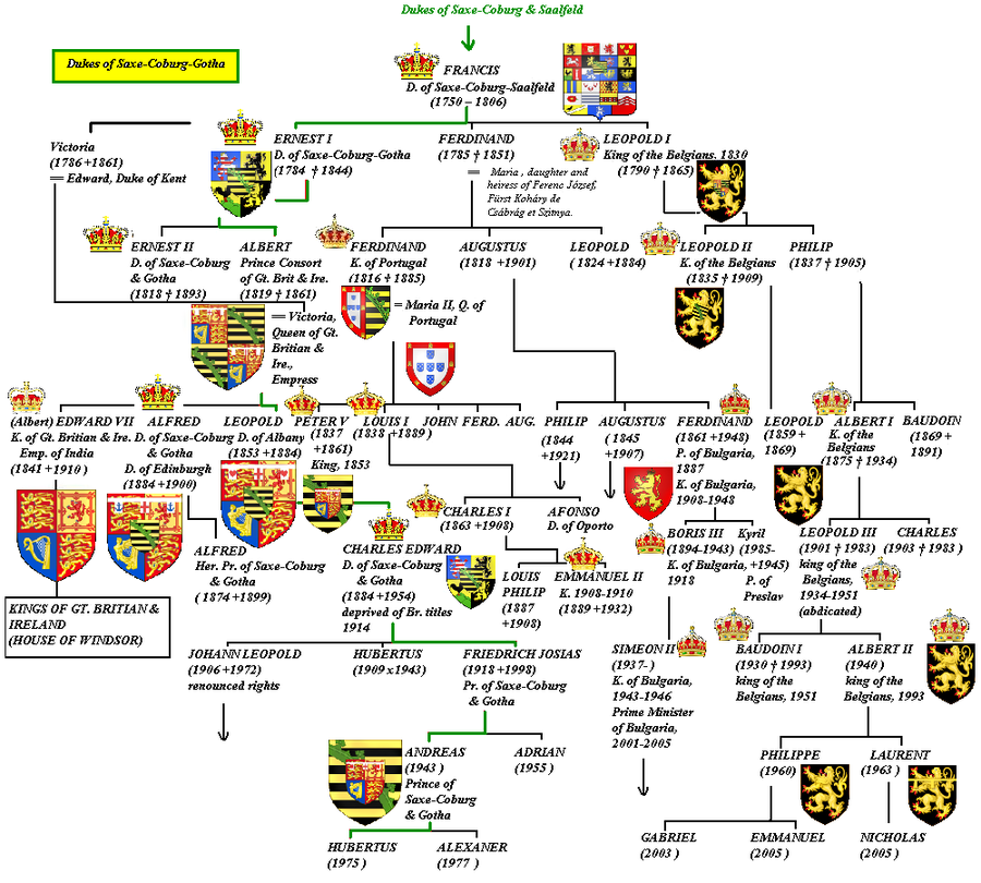 Founded by Ernest Anton, the sixth duke of Saxe-Coburg-Saalfeld, it is the royal house of several European monarchies, and branches currently reign in Belgium through the descendants of Leopold I, and in the United Kingdom and the otherCommonwealth realms through the descendants of Prince Albert. Due to anti-German sentiment in the United Kingdom during World War I, George V changed the name of his branch from Saxe-Coburg and Gotha to Windsor in 1917. The same happened in 1920 in Belgium, where it was changed to “van België” (Dutch) or “de Belgique” (French).