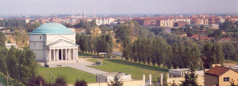 As the Savoy family refused to allow her to be buried next to her husband in the Pantheon, her children had a mausoleum built for her in a similar form (if on a smaller scale) in Turin, next to the road to the Castello di Mirafiori. The circular, copper-domed,neoclassical monument, surmounted by a latin cross and surrounded by a large park, was designed by Angelo Dimezzi and completed in 1888.[5][7]