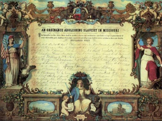 Eight of the sixty-six delegates to the Missouri Constitutional Convention were born in Germany. One of the immigrants, Arnold Krenkel, was elected Convention President. While nearly all native-born Republicans believed that Missouri’s blacks should be freed, the status of blacks in freedom was contentious. Many thought that blacks, if they were free, should not be given the right to vote. Even among whites, women and young people under the age of 21 were not allowed to vote. One could be both a citizen and be deprived of the privilege of voting in 19th Century America.6