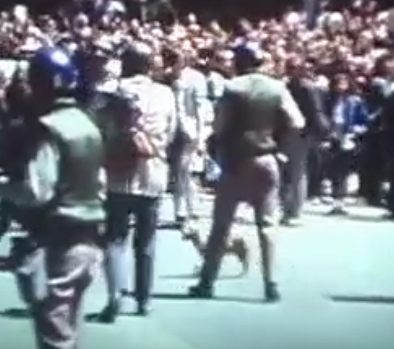 Peace Dog was spotted coming between Clark Kerr’s Goon Squad, and ‘The Utopian Dreamers of America. PD had this to say to the Club-Happy Campus Cops.