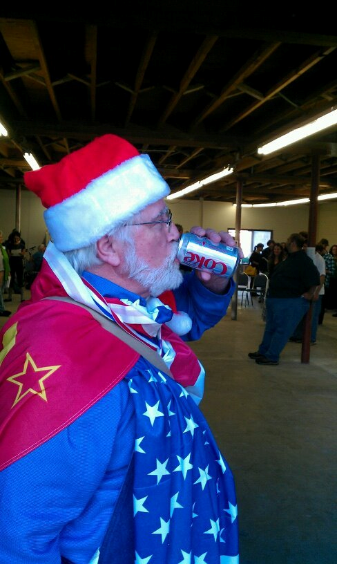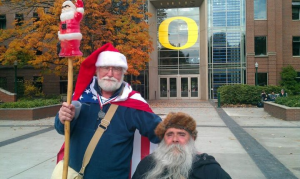 Above is a photo of me at Eugene OCCIPY drinking a coke. The guy who took this photo gave me my moniker ‘Uncle Sam-a-Claus the Government Give-away Kind of Guy’. I was telling folks to hit them where it hurts by backing Government Charity Programs.