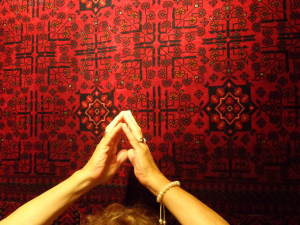 About ten years ago I went with Marilyn Reed to see Tenzin, a Buddhist monk that was speaking at Oveissi, an oriental carpet store. In back of him was a deep red carpet. As he spoke I saw two arms come out of the carpet holding a round translusive stone. I told Tenzin about my vision. I suggested he had been elected. Years…
