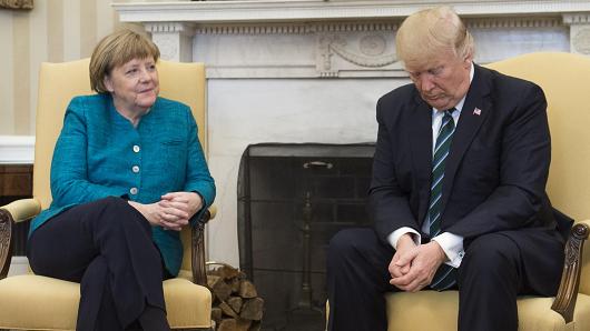 Now, it’s possible that Trump simply didn’t hear Merkel, though the chorus calling for a handshake was unmistakable. But it’s also true that Trump’s lack of a handshake with Merkel is yet another reminder of the vast differences between Merkel’s Germany, widely seen as today’s valiant protector of the global liberal order, and Trump’s America, a country ruled by a populist plutocrat whose policies feature building walls on borders, barring the entry of refugees, and ending Meals on Wheels for the needy.