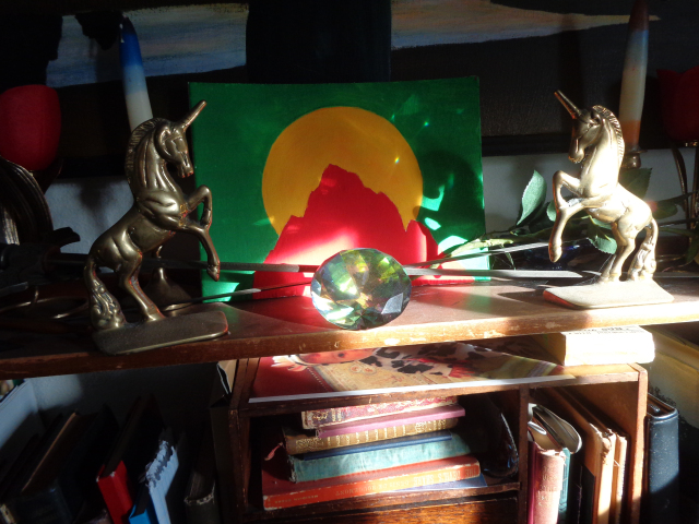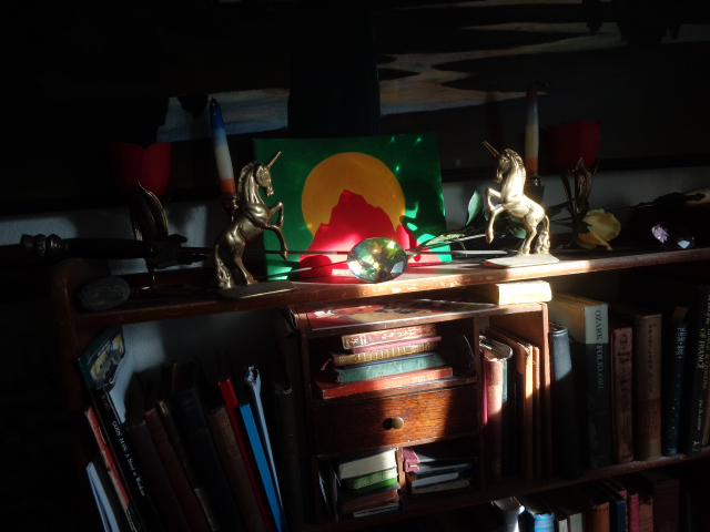 I woke from my nap to see sunlight reflected of a large glass gem. Light
