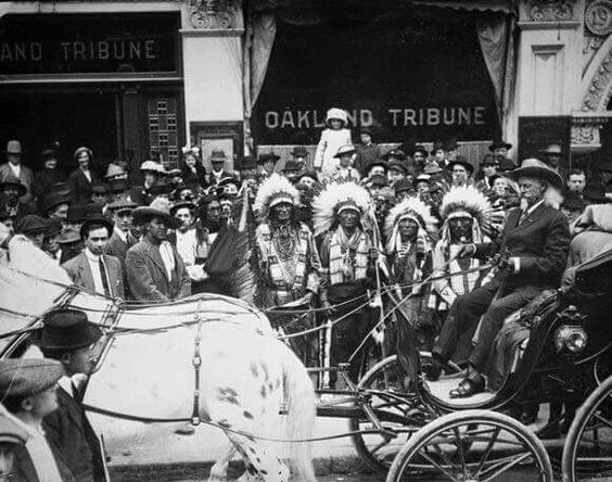 I just found this old photograph! It’s coming back to me. The Golden West Bar was patronized by employees of the Oakland Tribune. I talked to several of them. The Tribune was located in…………..THE GOLDEN WEST HOTEL……..that may have been located nearby. I am trying to locate it. Were the murals inside the Golden West Bar connected to Wild Bill Cody’s Wild West Show, and the hotel! This is astounding! The Tribune is no more! The ghosts of the men and women who printed a daily newspaper are calling me. I may show up October 1st for the anniversary of one of Bill’s last shows – which I am now going to organize! Too many ghosts for one man to handle, and remain in his body! Maybe I am the embodiment of Buffalo Bill?