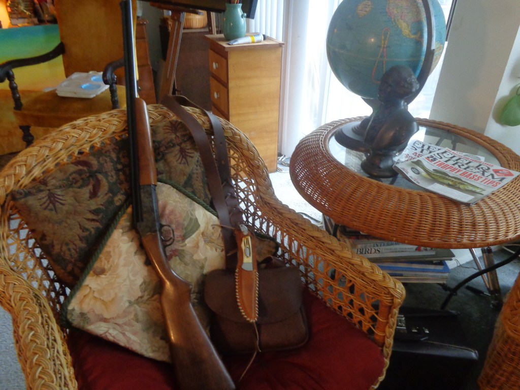 Above is the rifle/shotgun combo I will leave my grandson in my Will. This comes with a leather ammunition pouch, and, my hunting knife. Also, he will get Papa’s pocket watch with “Royal Rosamond Press” engraved on it.