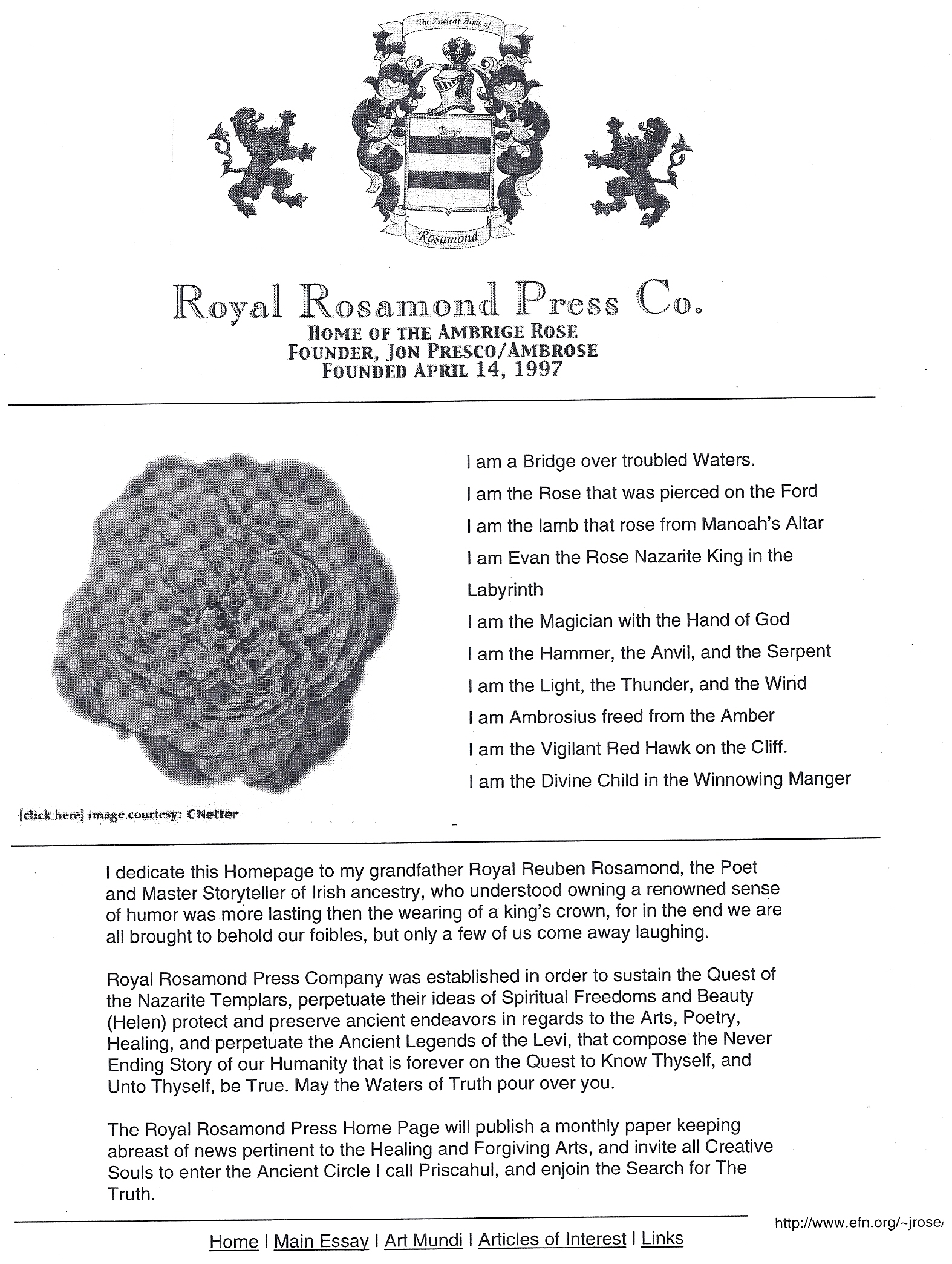 “In Medieval times Jesus’ mother was known as Santa Maria della Rosa, and according to a 19th century antiquary, Godfrey Higgins, in his magnum opus Anacalypsis Vol. II, 1836: “Jesus was called the Rose – the rose of Sharon”. This may suggest that Jesus was of a rose lineage, hence a possible genealogical connection with the Clan St. Clair of Roslin – Roseline? It is interesting to note from the signature of Sir William Sinclair, a former Earl of Rosslyn, that he signed his name St. Clair of Roselin. Sir William Sinclair (St. Clair) was referred to as the “last of the Roslins” and his death in 1778 terminated “the lordly line of high St. Clair.” Furthermore, ancient Scottish charters were witnessed by a certain Roger de Roselyn (my italics BD).