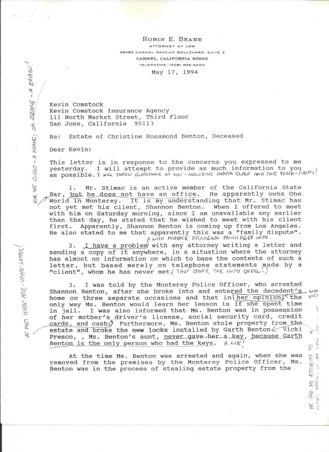 I just discovered that Robert Buck has been on the Board of the Jeffers Tor House Foundation for many years. I assume Lacy Williams Buck is his daughter, she too on the board. What this tells me, is, Robert Buck understands historic family legacies. Why then did his law firm utterly destroy my family legacy, and its star, Christine Rosamond Benton. Before they did this, they destroyed my niece, Shannon Rosamond. I am sure Robert Buck and his partner, Sydney Morris, know Lawrence Chazen, and Robin Beare, who suggested my niece be KEPT IN JAIL, instead of being in HER GALLERY selling Rosamond prints. Morris blesses the desire of ‘The Caretakers’ to write a biography and make a movie. Robert Buck’s book ‘When You Close Your Eyes’ denigrates and demonizes my late sister. Only Charles Dickens, or Victor Hugo, could do The Real Rosamond Story – JUSTICE!