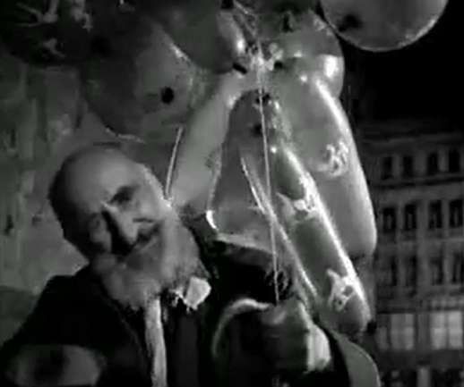 All of a sudden, this policeman’s shadow is casting his profile on other buildings! I realize everyone has a big nose, and are showing off their aquiline noses. Whose idea was this? I am sure Stefan has not seen this movie. The old man with the balloons has the biggest nose! This all fits with Stefan’s art piece that as written up in the New York Times. Uncanny! What is Eins really up to? He says he goes there to tend to his outdoor sculptures. I see him walking about with a big grey overcoat.
