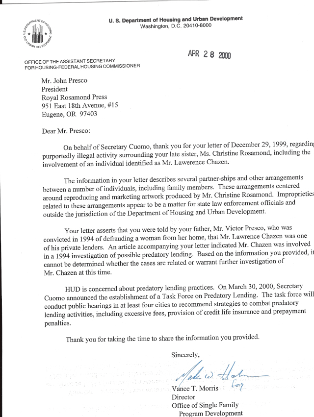 The only answer can be, Sydney Morris was contacted in order to protect Garth’s reputation. I am sure Shannon was not shown her mother’s DISAPEARED TELL-ALL AUTOBIOGRAPHY. Garth had wealthy clients and friends, including Gordon Getty and his financial advisor, Lawrence Chazen, who in court, tried to become the Special Executor after Judge Silver disqualified my ex-brother-in-law. He was dismissed because he was the No.1 creditor and ex-partner in first Rosamond gallery.