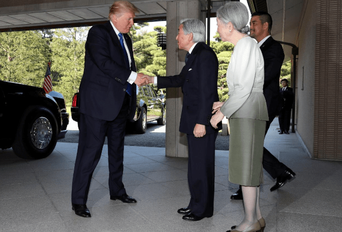 And Trump is the second unorthodox world leader to meet the emperor in the space of a week.