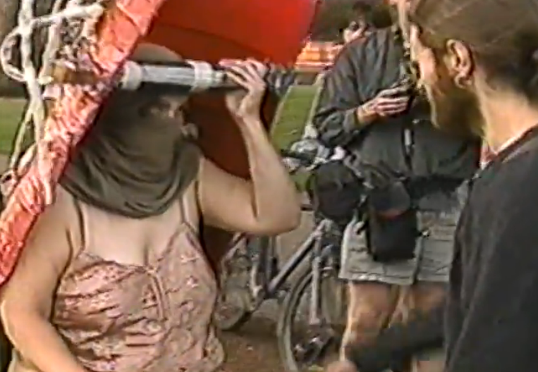 The Trickster under the barrel jumped up on a table in front of Kitty Piercy and the City Council, and said she was not moving until The Normies talked about the homeless problem again. IT accosted a local reporter, and set up a situation where the Eugene Police were forced to arrest her – half naked! Alley was ready with her camera.