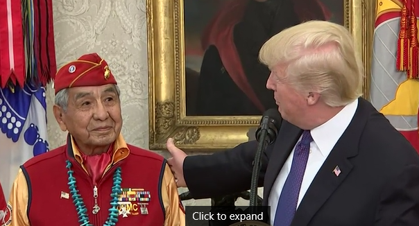 Trump, the Fake Republican, testified to the truth Native Americans were here first, and thus, according to Christian-Republicans, they own America, and not followers of the Fake Jesus who came to the New World because the Pope declared their religion a heresey – NOT VALID, not ordained – BY GOD! That THE LIAR IN CHEIF launches his insult on Navajos and Democrats in front of a portrait of THE INDIAN KILLER is a greater insult!
