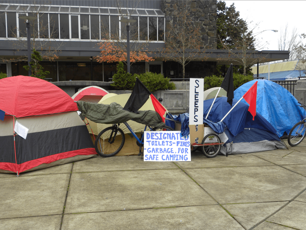 She asked the city to provide portable toilets and trash service for homeless campers. “The cold and rain are coming,” she said. “And we are not leaving.”