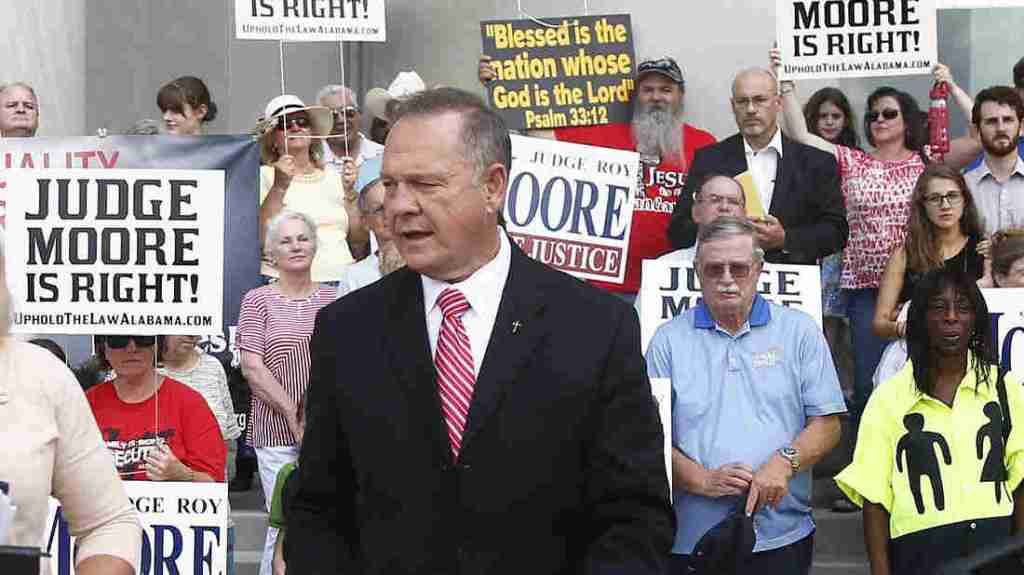 Moore’s statement put the stakes of the election in dire terms, hitting on many of the fire-and-brimstone themes that attracted conservative and evangelical voters to his camp.