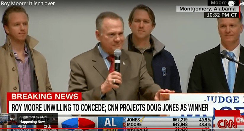 Trump is the President of the TeaVangelicals, and no one else. He pours gasoline on their destructive propaganda that is dividing our nation in half. They claim the Democrats are going out of their way to destroy American Tradition, such as Christmas. This is why Trump made a speech supporting Moore with a big “Merry Christmas” sign.