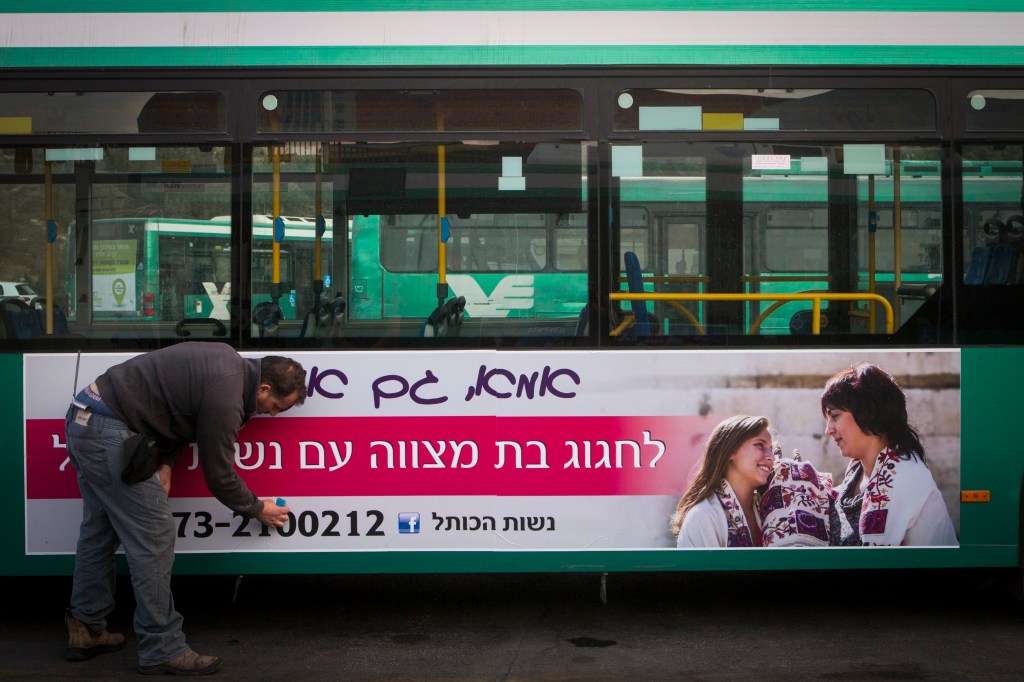 As her two older sons perched on the seats behind her, she looked ahead at the men seated in front, mostly Hasidic Jews in wide-brimmed hats, and said, because her religion dictates the separation of the sexes, she never wondered what it would be like to sit with them.