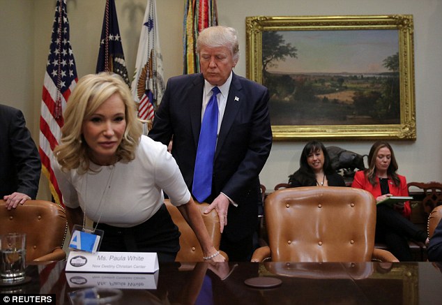 Trump’s chief spiritual adviser is not his veep, that pious silver fox who says he never dines alone with a woman not his wife. That sacred duty falls to White, chair of the White House evangelical panel. She is thrice-married (currently wed to Journey rocker Jonathan Cain, whose “Don’t Stop Believin’” was an ’80s rock anthem) and preaches to millions on TV and, when she’s back in Florida, to her smaller flock at the New Destiny Christian Center church in Apopka. White and her fellow prosperity theologians have put some white-out over the New Testament line that it is easier for a camel to pass through the eye of a needle than for a rich man to enter the kingdom of God. She prefers another biblical passage, “When you enter the land I am going to give you and you reap its harvest, bring to the priest a sheaf of the first grain you harvest” (Leviticus 23:10 NIV). Her webpage First Fruits 2017 is an online collection plate, decorated with a photograph of grapes, pomegranates and oranges, and click buttons labeled “Give your best first fruits offering today!” and “Send your prayer request today!” lead to forms for credit card payments.