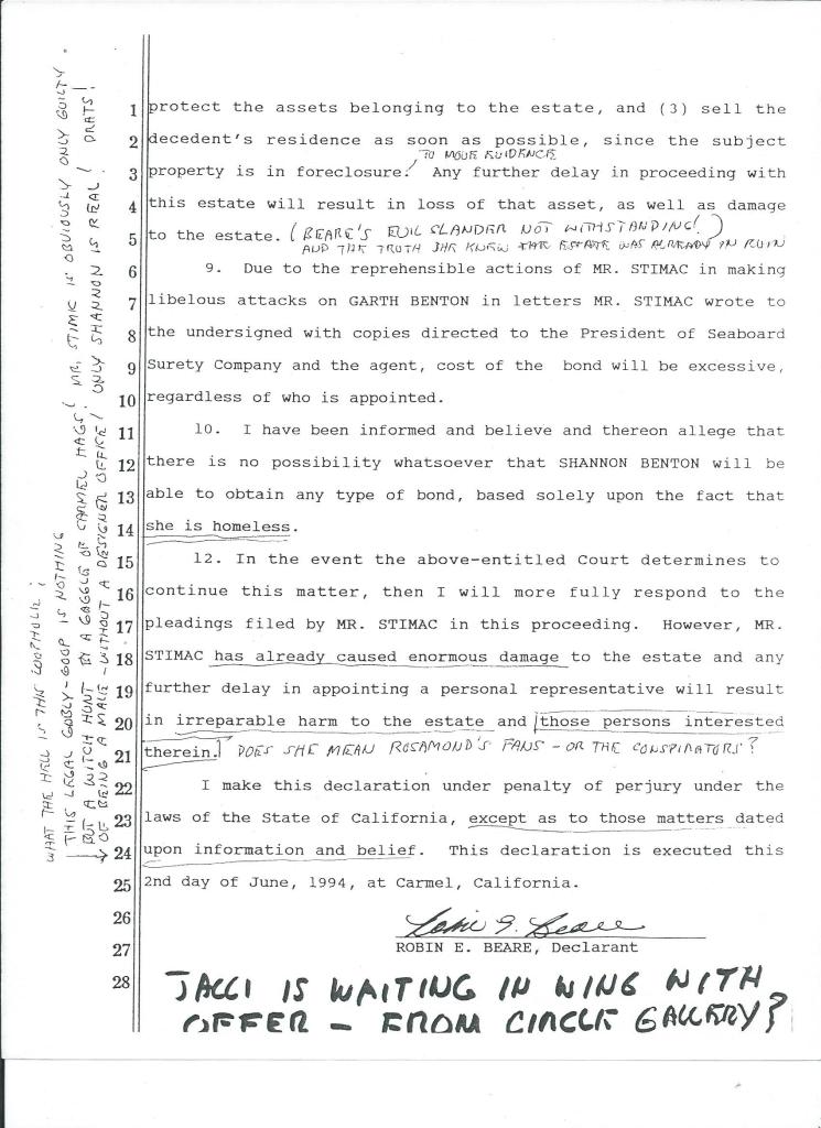 The IRS found much tax fraud. Folks were going to jail. The world famous artist was going to roll over on everyone. She had written a biography with the help of Faulkner, or, so they said. How to SILENCE Christine was very topicle in the Carmel Art Scene. Chazen and Sydney Morris live in Carmel. They had to know Garth Benton’s divorce attorney who had to know all about the trouble with the IRS – and the talk of incest. She went after the adult Heir – BIG TIME! She was living her mother’s house going through all her paperwork.