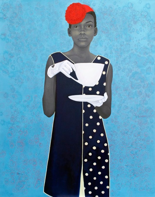 “My work began as an exploration to exclude the idea of color as race from my paintings by removing “color” but still portraying racialised bodies as objects to be viewed through portraiture. These paintings originated as a creation of a fairytale, illustrating an alternate existence in response to a dominant narrative of black history. As my ideas became more legible the use of fantasy evolved into scenes of spectacle (e.g. circuses), to make direct reference to blackness and racialisation. I stage specific scenes of social ascent, and racial descent that chart the psychology and performance of identity with a particular attention to notions of social exclusion and assimilation. All of these things configure a practiced position or role played within a specific space or context. These kinds of performances blend and bleed the borders of how blackness is defined within the phenomenon of race as it relates to a specific experience of blackness in America, which has been performed in front of an audience that pretends not to exist. I am using historicism and race, not to be provocative, but to find some meaning within the ideas of self-actualization and the evolution of identity as a reaction to external directives.