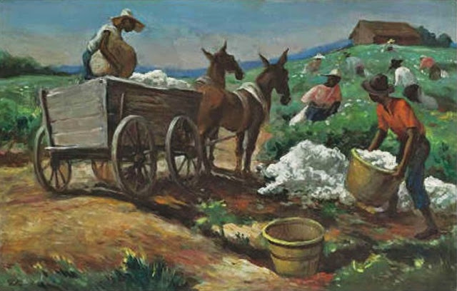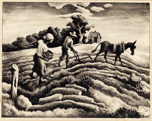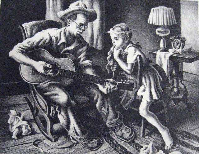 Thomas Hart Benton saw himself as a Historian and Archivist. He painted many black people doing what he saw black people doing. So far, I only see one image that looks like a portrait. I find it very regal, and full of soulful stories that did not get recorded.