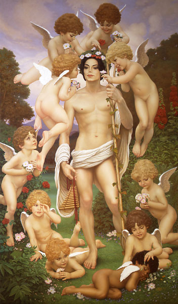 Ready for another Art Lesson. David Nordahl puts Jackson on a white horse as a gallant knight. He wants to be WHITE. Note Venus holding a cherub. This is Belle. She and her child, are white. The horse is not BLACK. The black cherub, has been put to rest.
