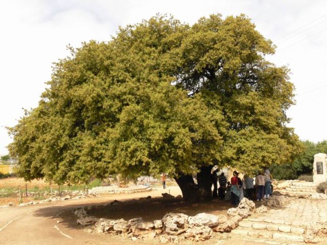 Let’s now tell the fascinating tale of Shechem and its oak. Shechem, the first city in the Promised Land to be mentioned in the Bible, is located approximately 45 kilometers directly north of Jerusalem. Scholars agree the tree was almost certainly an oak. As if to send up a flare alerting us to its special significance, there, by the tree, three ‘firsts’ occurred: