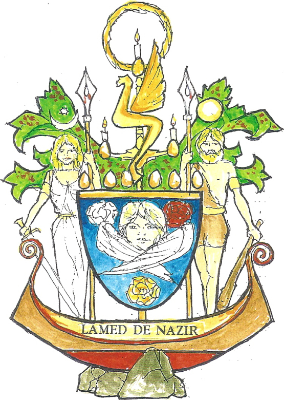 Cote of arms for the city of Rougemont ‘Red Mountain’ and cote of arms for the Rosamund family with weaver’s hook because we are a family of weavers. Consider the thread that protects The Rose Garden.