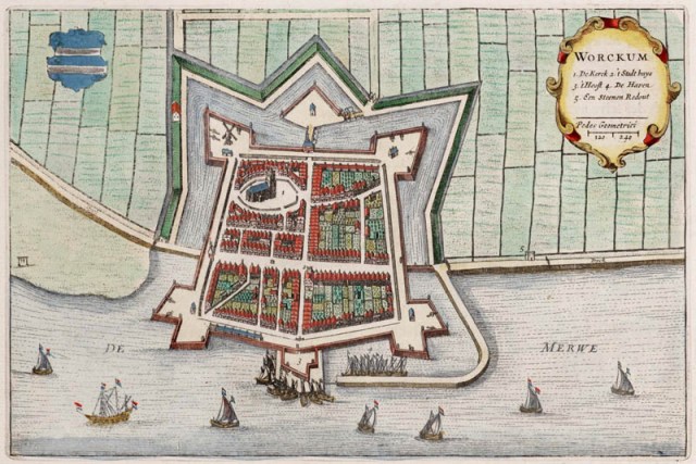Samenkomst van de Maas en de Waal. Van 1583 – 1588 werd de stad met een vestinggordel omgeven, de vesting werd ontworpen door Adriaen Antonisz van Alkmaar