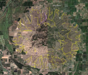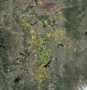 “After meandering throughout the Oakland hills, they head inland towards Mt. Diablo where they lead to mysterious stone circles, up to 30 feet in diameter. In one place the walls form a spiral…