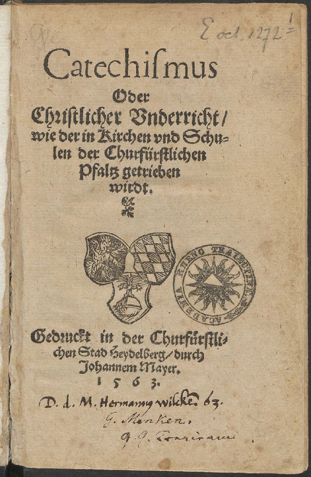 Above is the title pages of two books on the Confessionals, by my ancestor, Gottschalk Rosemondt, and the other, the Heidleberg Catechism. Both have a cote of Arms. One is the cote of…