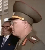 “Geez! What an idiot. New best buddy has made fool of wrong general. I may not be able to save him. There goes my Christmas at the White House! I got watch out for my own ass! His family will be shamed to the third generation. Several will take their own life. Many will be hauled away to the work camp. But, Donny don’t care. What a big goof. He do this on purpose? His people must have done research, and know General Un Jung Kai practiced his salute – for three days!”
