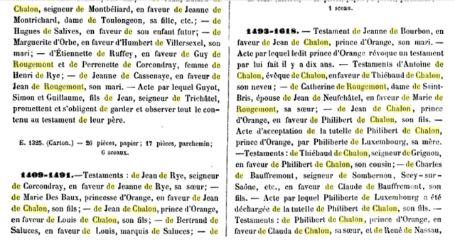 Mary died in 1417 in Orange and was buried in l’église des Cordeliers at Lons-le-Saunier.[1] Her husband died in 1418. Louis II inherited Châlon-Arlay from his father and Baux-Orange, including the Principality of Orange, from his mother. He claimed to have also inherited the County of Geneva via his grandmother, but lost a lengthy legal battle over this claim against the House of Savoy.