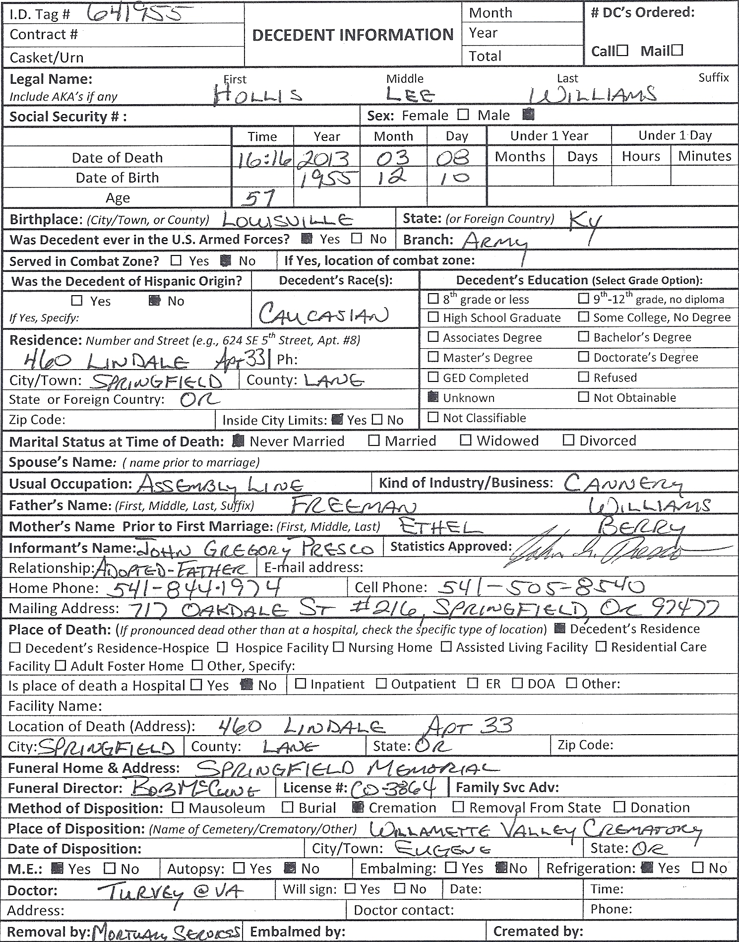 As I stood at the foot of Hollis’s bed, all the trouble I saw coming my way, I realized was not coming Hollis ‘way, too! My dear friend was out of loop. All his trials and tribulations were over. He was at peace. He was down for a long snooze. Whatever bullshit that was heading OUR way, no longer had anything to do with Mr. H. This was our moment of bliss. Then I heard the siren.