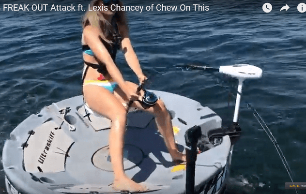 After I saw this video I went and talked to my women at the stores about it. I was all jazzed-up! I stopped in Big 5 Sports, just to look at new fishing poles. I was suffering from Bent Penis Pole Envy. To see Lexis with that tight pole bent over all the way, with a heavy fighter on the line, made my Sport Dick hard. The sight of her butt-crack, and spread legs, was a new one. Beauty and the Sexy Beast! Sport’s Sex illustrated! Then came her high pitched screaming through her perfectly white teeth! Her hat and her shades – were perfect! That blue bikini reminded me of my Good Ol Venus days! Yes! That’s a 15 foot shark she has on the line! Of course she’s going to need a bigger Ultra Skiff – much bigger!