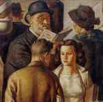 Benton initially met Wright in the winter of 1909, and immersed himself in the Synchromistic methods. Unfortunately, the only way we can now examine the influence of this time period had on his work is by drawing conclusions from his later work, as much of the work created from 1914-1917 was destroyed in a fire at his home in Neosho Missouri in 1917.